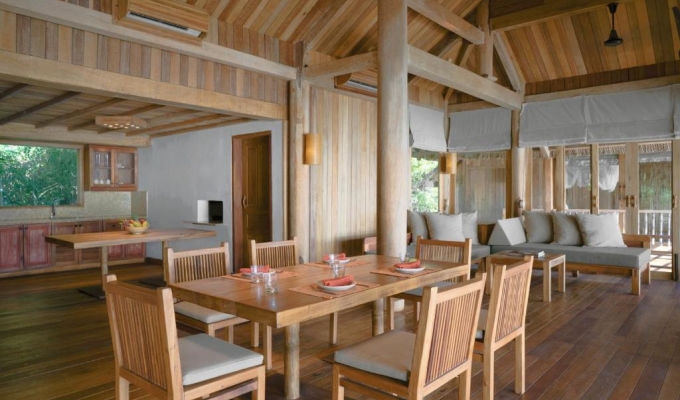 Mỗi biệt thự tại Six Senses Ninh Van Bay đều có sân vườn/hiên tắm nắng và khu vực tiếp khách riêng biệt. Các tiện nghi của biệt thự bao gồm hầm rượu nhỏ, truyền hình vệ tinh và đầu đĩa DVD.