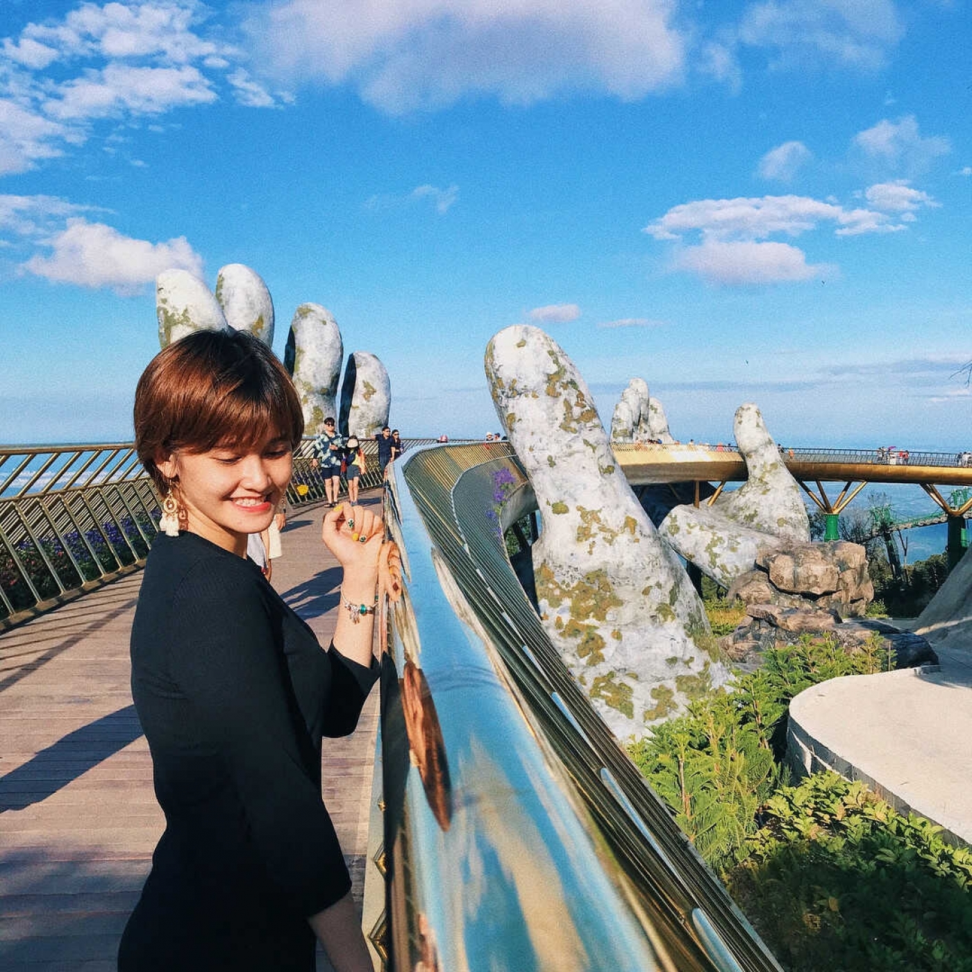 - Đến nơi, Quý khách tham quan các điểm: Cây Cầu Vàng, Chùa Linh Ứng có tượng Phật Thích Ca cao 27m, Vườn hoa tình yêu Le Jardin de Amour...